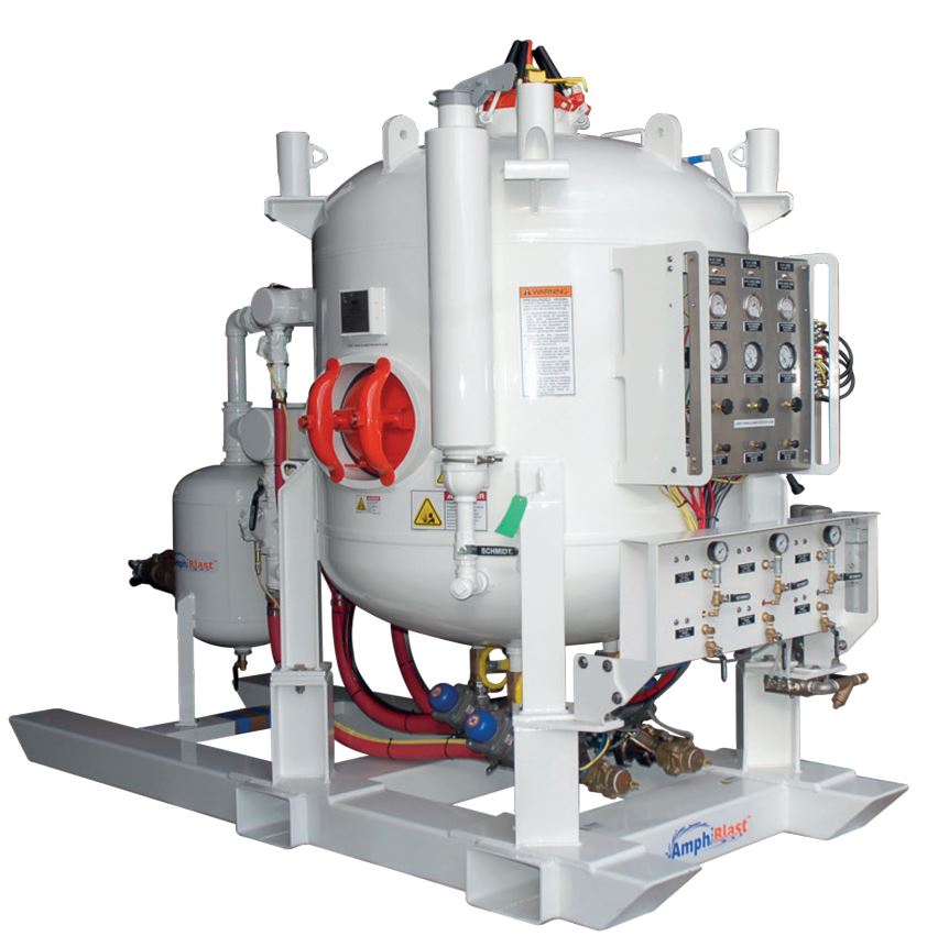 The AmphiBlast is the best of both worlds: wet blast, dry blast, softwash, and blowoff all in one unit. This versatile abrasive blasting system combines proven and familiar Schmidt® controls with innovative moisture injection technology for a highly productive and easy-to-use wet/dry air blast system – all in a single unit.