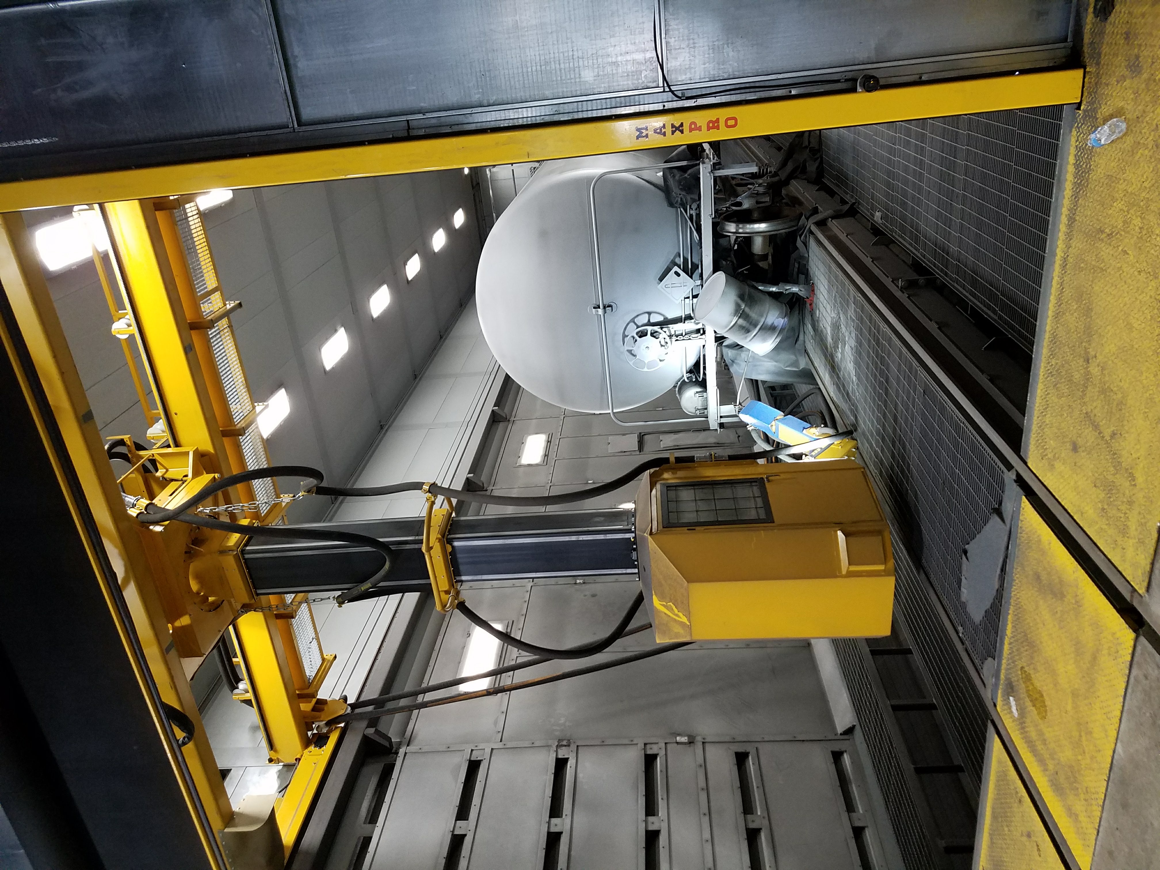 The KUBE RBB series, utilises blasting robots that have been refined and improved for over 40 years, taking advantage of the many technological developments that have occurred within that time. This system is able to control two 19mm blast nozzles simultaneously and without the human fatigue element. The result is massive output with a consistent finish – a highly efficient combination. RBB robots can either be controlled from a cabin within the booth or from a control console outside the booth. The robot is equipped with highly durable cameras enabling the operative to obtain an accurate view of progress.The KUBE Robotic Blast Booth series represents the ultimate in blast automation and product durability.